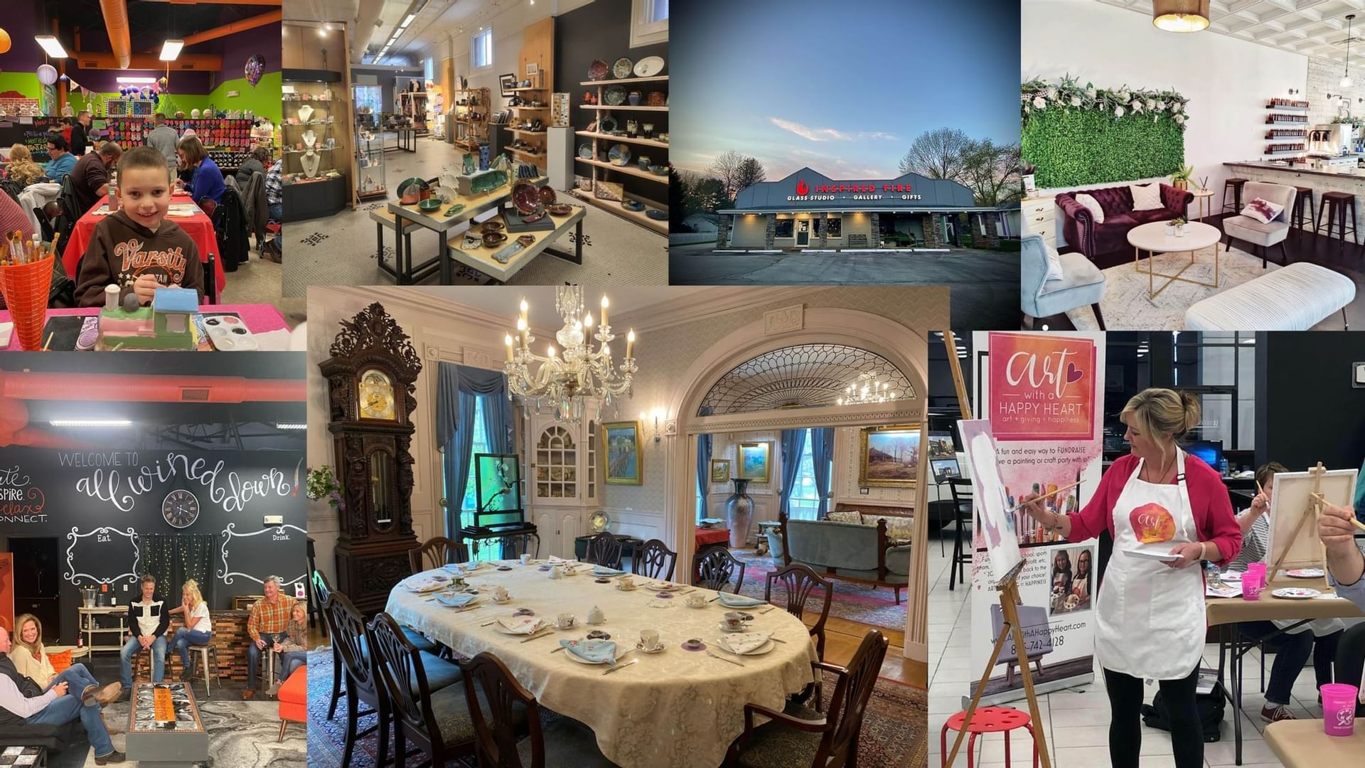 All Fired Up! is a paint your own pottery art studio for people of all ages and talents (no artistic talents necessary, they'll show you how to find your artistic side). Walk ins welcome! - All Wined Down! is the sister studio to All Fired Up! It's a fabulous wine bar open to ages 18 and up featuring local boutique wines, art gallery for local artists and creating your own art, and an art boutique currently open by reservation only (groups of 6 or more).